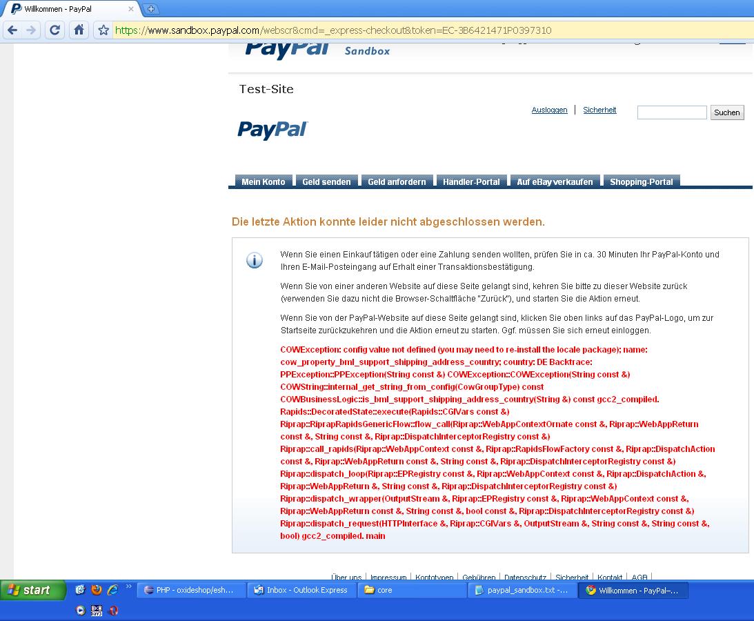 Very strange error. Looks more like Paypal fault. From what I researched I see it sometimes also happens for other integrations as well: http://www.xt-commerce.com/forum/paypal-express-kaufabwicklung-f-r-xt-commerce/74673-paypal-express-geht-nicht-mehr.html I think the only solution what I can think of is described here: https://www.x.com/thread/38800 but I need more info from Birute, how exactly (which step) you reproduced the error? |