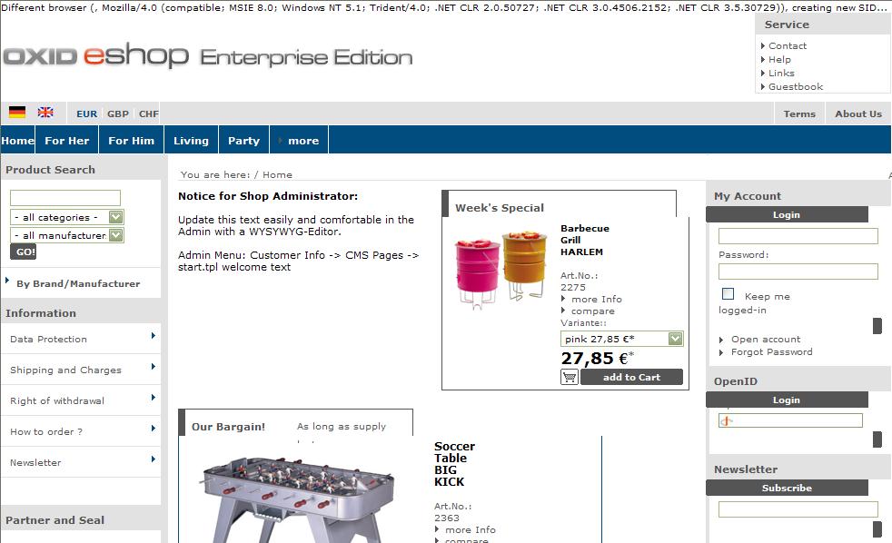 | Additional Information | Check oxSession::_checkUserAgent | ||||