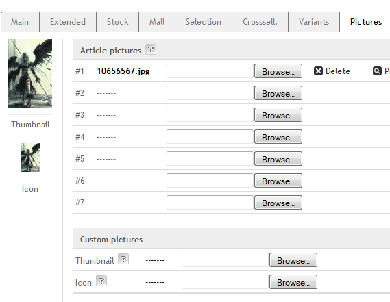 since some recent pictures fixes, situation is: 1) if no specific ico and thumb pictures are saved and master picture is uploaded, ico and thumb pictures are shown correct, but after tab refresh, they are show as "-----" 2) if there are specific ico and thumb pictures saved, after uploading master picture, this new name is shown near ico and thumb, but after tab refresh everything is ok. the problems is only regarding pictures names, not the pictures files themself. |