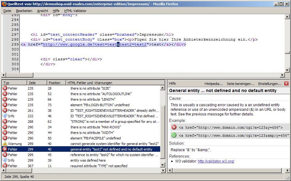 Hello, I've attached a screenshot showing the problem. The link is inserted with an & amp ; between test and test2. But it's replaced with an &-sign in the source code. That produces invalid html-files. (http://en.wikipedia.org/wiki/Standard_Generalized_Markup_Language) greetings |