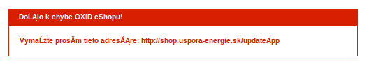 | Steps To Reproduce | 1. set Slovak language as default language for the e-shop 2. create /updateApp directory on the server 3. try to access main e-shop page in the browser 4. Slovak laguage is broken on the error page (see attached screenshot) | ||||