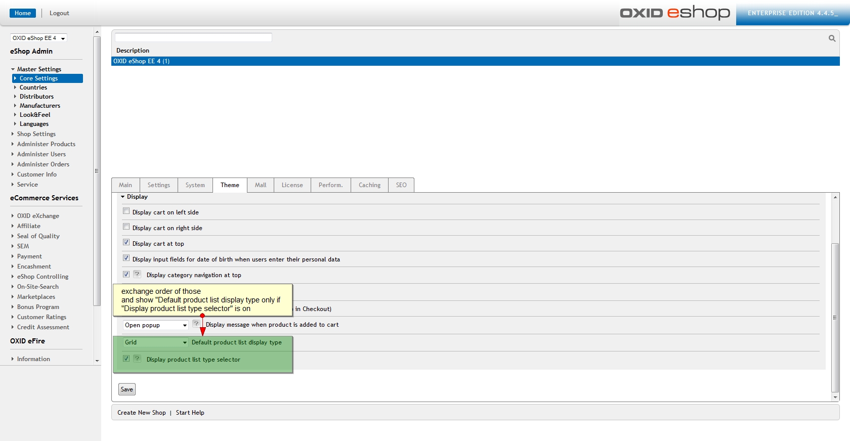 | Description | in Admin area -> Core settings-> Theme tab, there are options: Default product list display type Display product list type selector Switch the places of these options, that "Display product list type selector" would be displayed above. | ||||