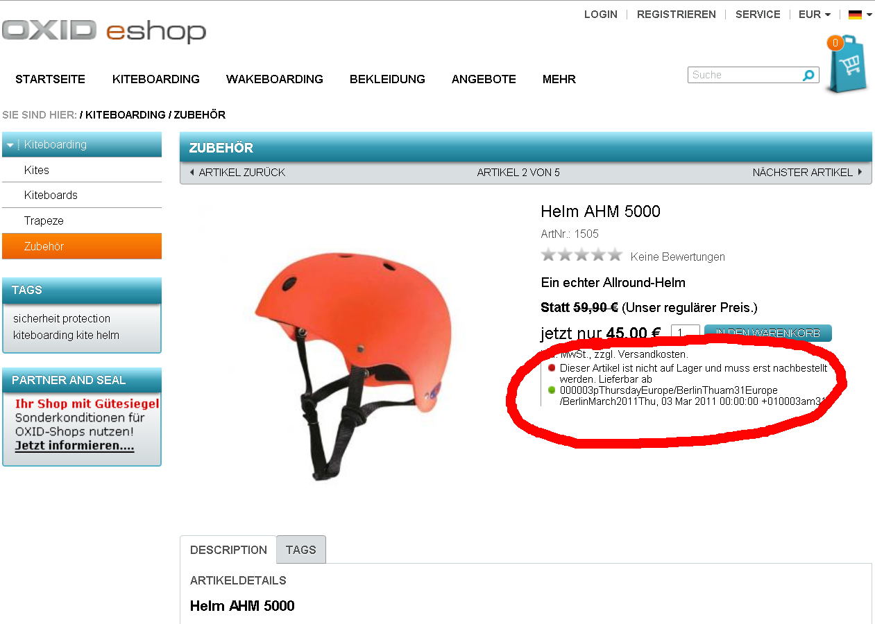 | Summary | 0002280: If article not in stock, availability date not displayed correctly | ||||