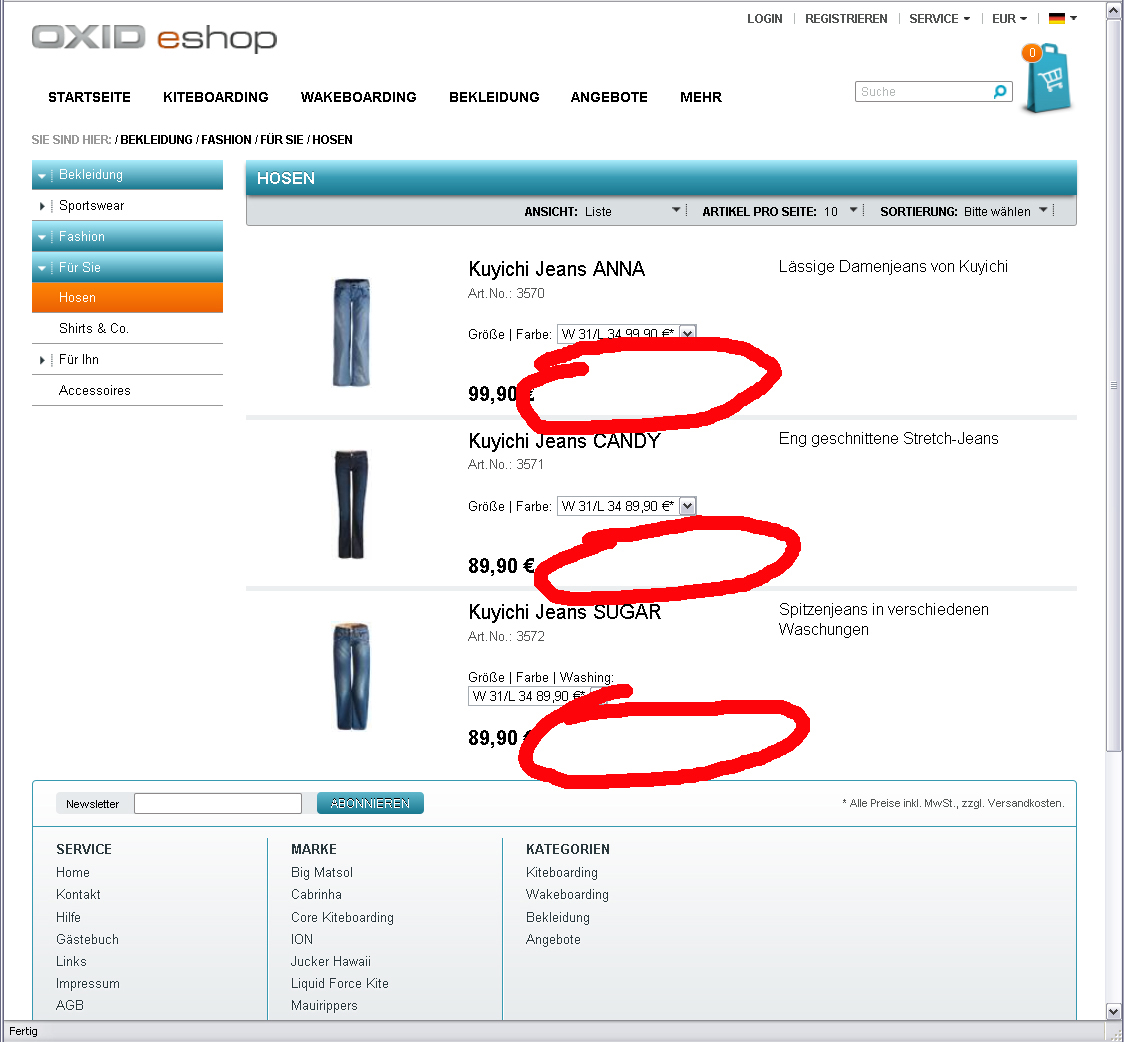 | Description | If there is a product with attributes, it's not possible to put it into basket if the products of the category are shown in a list view (basket button is missing). Products with attributes are in: Fashion -> Für Sie -> Hosen Fashion -> Für Sie -> Shirts&Co. Fashion -> Für Ihn -> Hosen The button is missing only in a List view type. In Double Grid or Grid it's displayed. | ||||