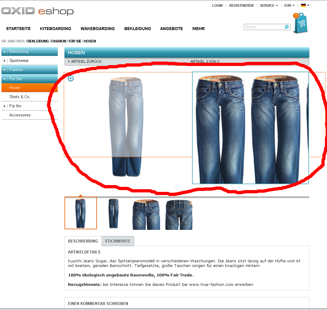 | Description | For the first two product pictures the zoom is not displayed correctly. Zoom frame is too big and zoomed picture is displayed twice. | ||||