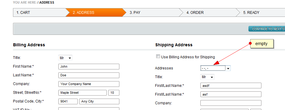 | Summary | 0002398: if shipping address is added in order step2, after going to next step, customer is redirected back to order step2. | ||||