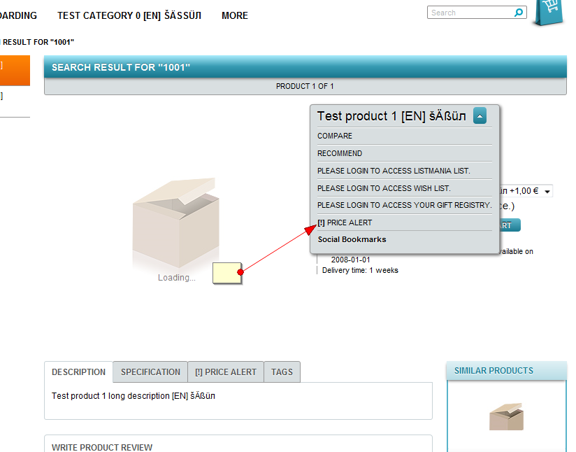 Summary0002526: '[!]price alert' link does not lead to price alert form