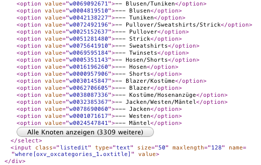 A similar select box with all categories is shown above the article list at Admin / Article management / Articles. This huge list makes product management through the admin interface very unpleasant due to the long loading times.