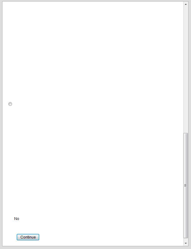 | Description | In Internet Explorer 9 the display of radio buttons, labels and "Continue" button is broken. Controls appear not in one block as in Firefox. |