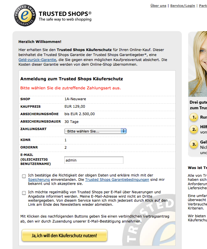 | Summary | 0003146: Trusted Shops Käuferschutz / Buyer protection integration is invalid | ||||