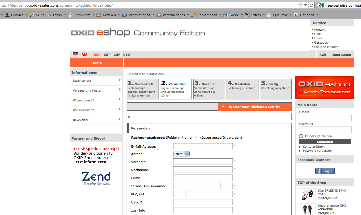 | Summary | 0003257: Checkout without registration delivers error msg "0" if fields are left empty | ||||