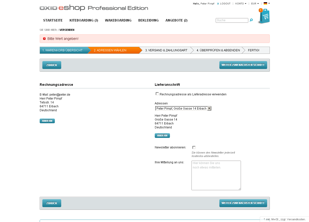 | Description | Delivery address data is lost if mandatory fields are not filled in. There is an error message "please fill out filed" but the user gets no hint, which field is missing missing. | ||||
