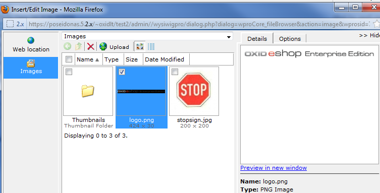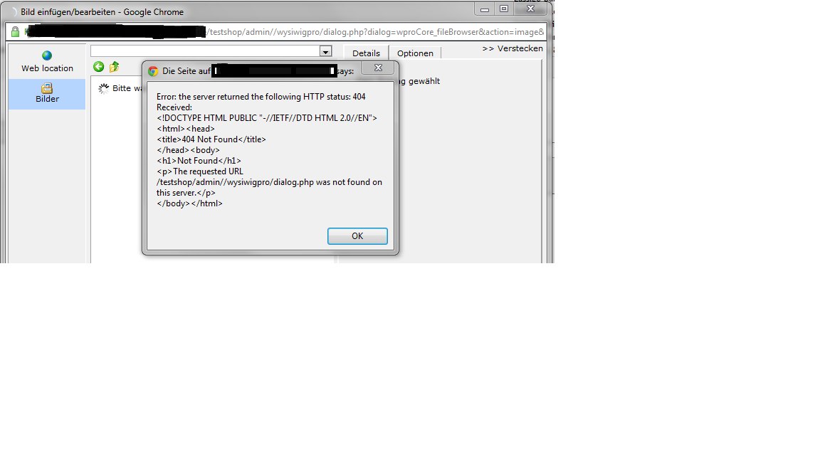 | Description | if administration area is protected by ssl: $this->sAdminSSLURL = 'https://testshop/admin'; you can't use the picture functionality from wysiwyg editor, because it couldn't find the existing file dialog.php. Please see the attached screenshot. It shows the behaviour. Note the double slashes after admin. I guess this causing the error. | ||||