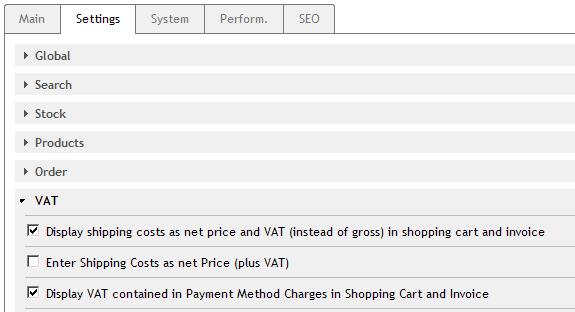 sorry - wrong sentence copied in description above... should be: "Display shipping costs as net price and VAT (instead of gross) in shopping cart and invoice" "Display VAT contained in Payment Method Charges in Shopping Cart and Invoice" |