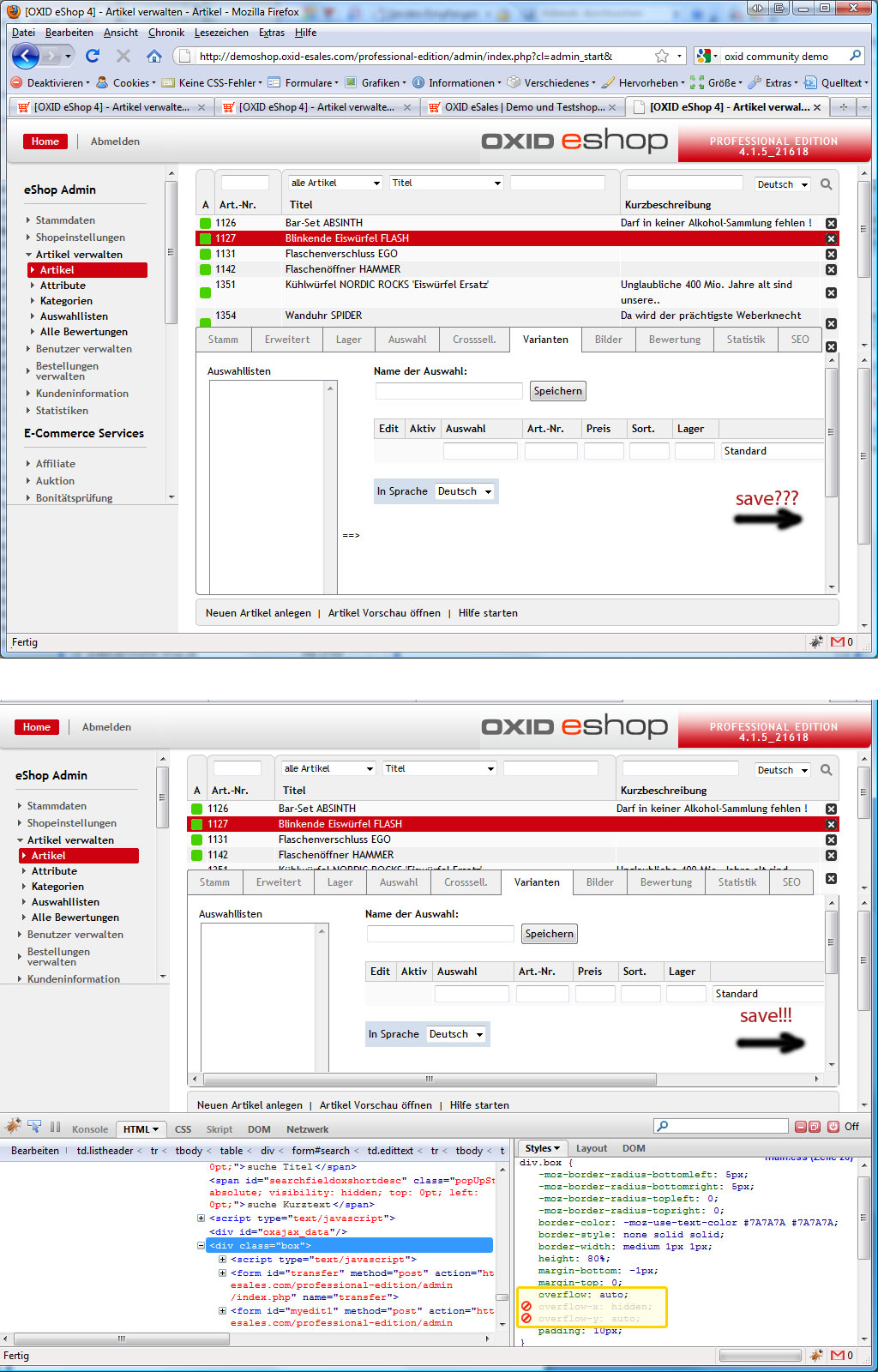 | Description | Change screen resolution to 1024, go back at least one meter from your screen... Go to Manage articles -> Articles -> and try to insert variants... Due to the horizontal scroll bar is missing, one have to navigate using the TAB key. | ||||