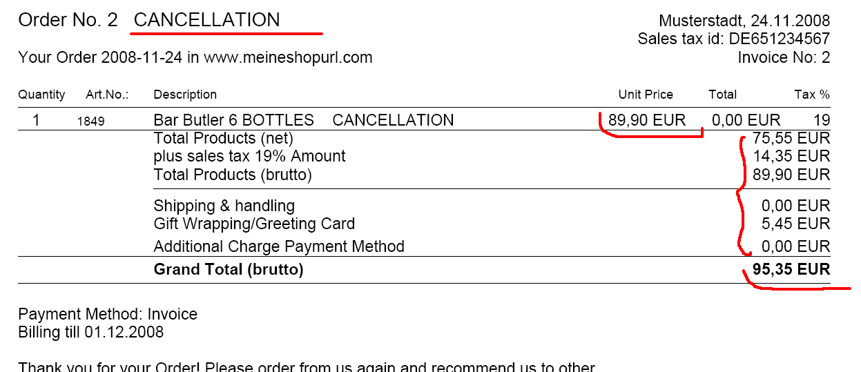 | Description | all prices, shipping, wrapping etc are displayed in pdf even if order is canceled. see attached img. | ||||