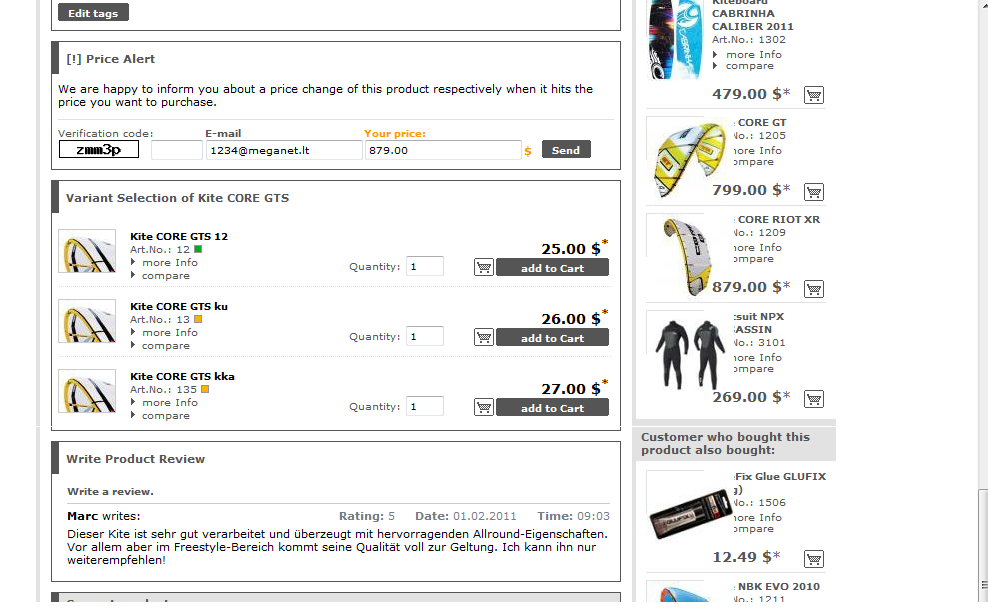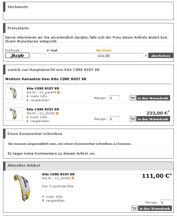 - create some variants of one article (not multidimensional) enter a price and activate them