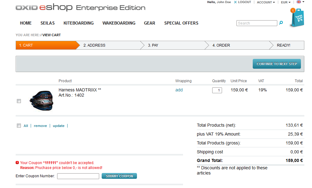 Steps To ReproduceIn example the coupon with 10EUR discount was inserted.