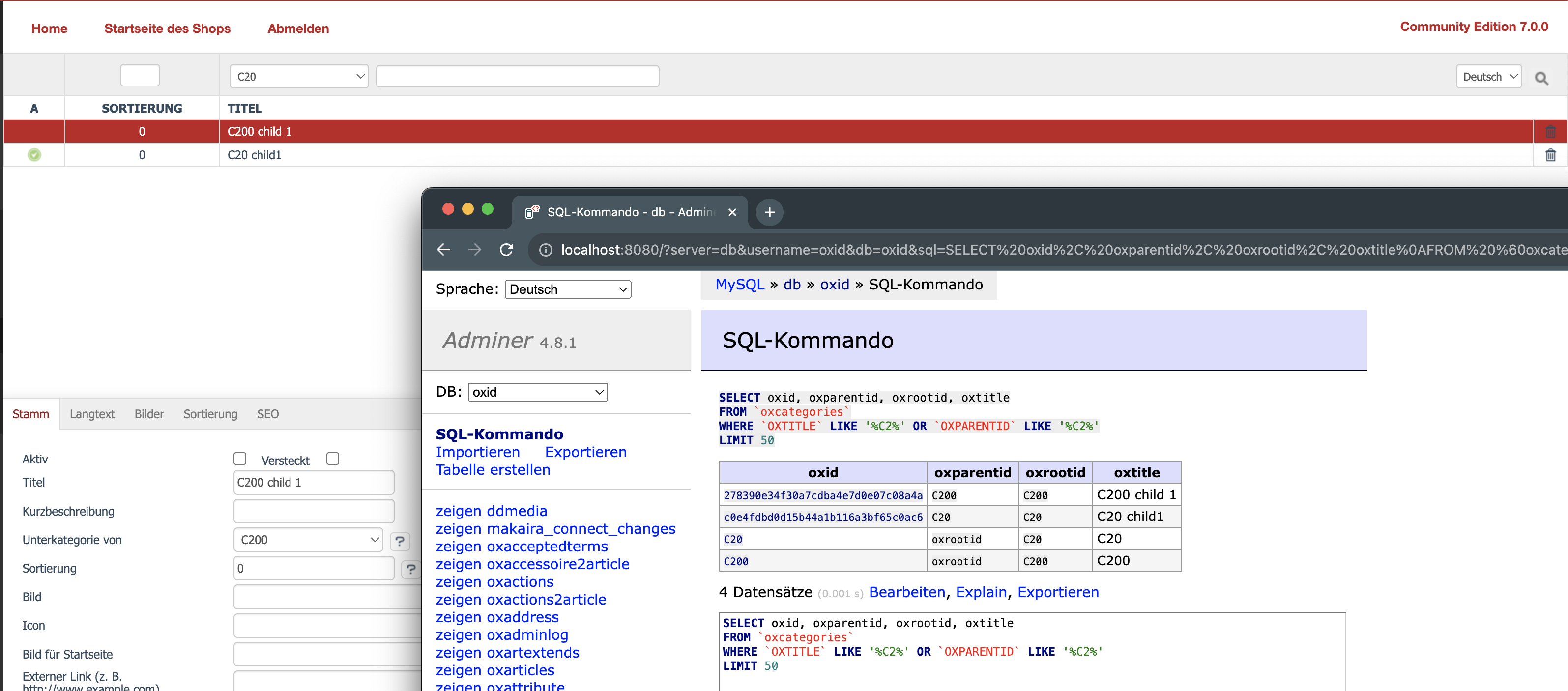 Steps To ReproduceCreate three categories and use phpmyadmin to set their OXIDs = C20, C200, C201