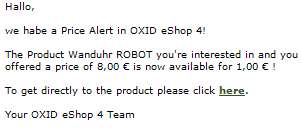 | Description | Set up a new product for e.g. 20€. Set up a pricealarm for e.g. 8€. Change price to e.g. 7€ Go to Customer Info->Price Alert E-mail sent to customer after clicking link in main box contains 1€ as regular price instead of 7€. | ||||