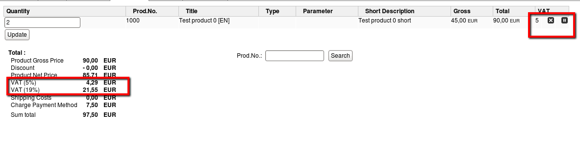 4. See that in product total list deleted product VAT is still displayed.