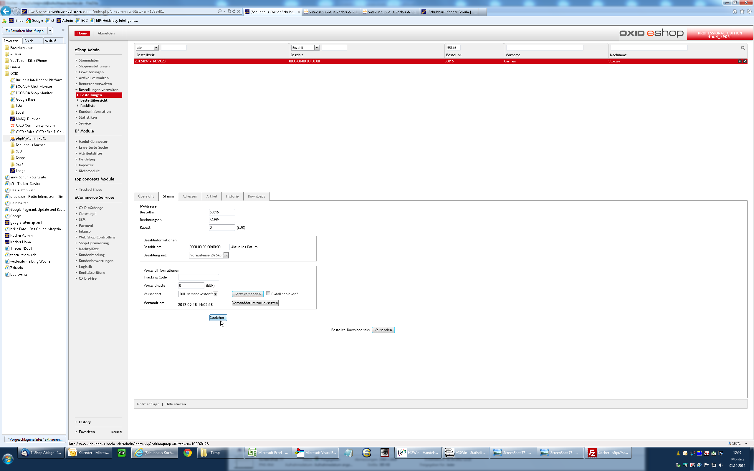 Hi, when I for example want to make a 'Rabatt' or store a 'Tracking Code' to a existing order I have to klick 'Speichern'. When now the price of the article has changed in the shop this new price is then in the existing order. But my customer has to pay the price of the moment of the order and he already has paid this price when paid with PayPal or credit card! When I now print the invoice there is the wrong price on it. The shop has to calculate with the price in oxorderarticles and not with the price of oxarticles!!! The wrong handling of the shop has a bug in itself also. Look at Screenshot 80 before the pricechange ant to Screenshot 81 after. All prices are now the new prices exept OXPRICE. This is a double-bug ;) Best regards |