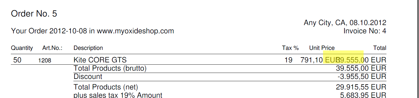 | Description | In pdf invoices all products which have totals with 5 numbers (10 000 EUR and more) displayed not correct. See image attached. | ||||