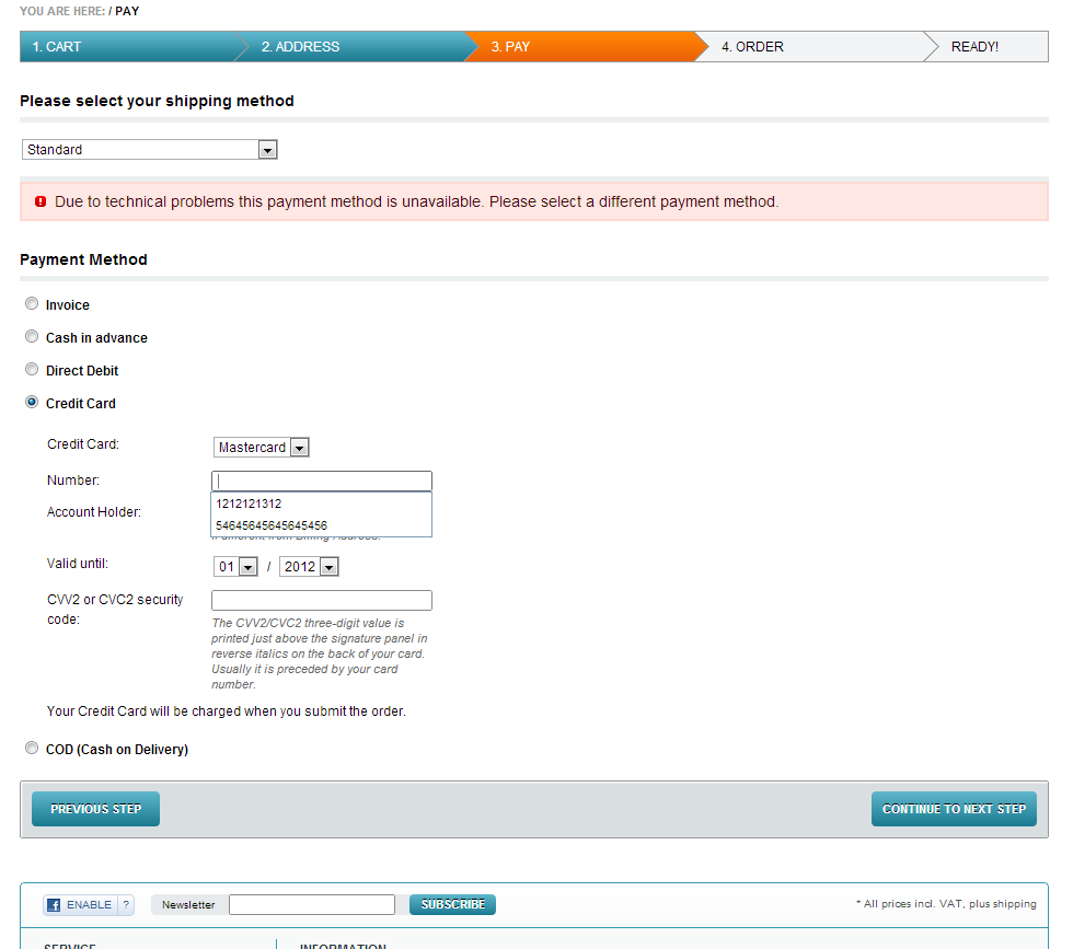 | Description | Some input fields shows suggestions, even credit card numbers, this should not be showed for users. | ||||