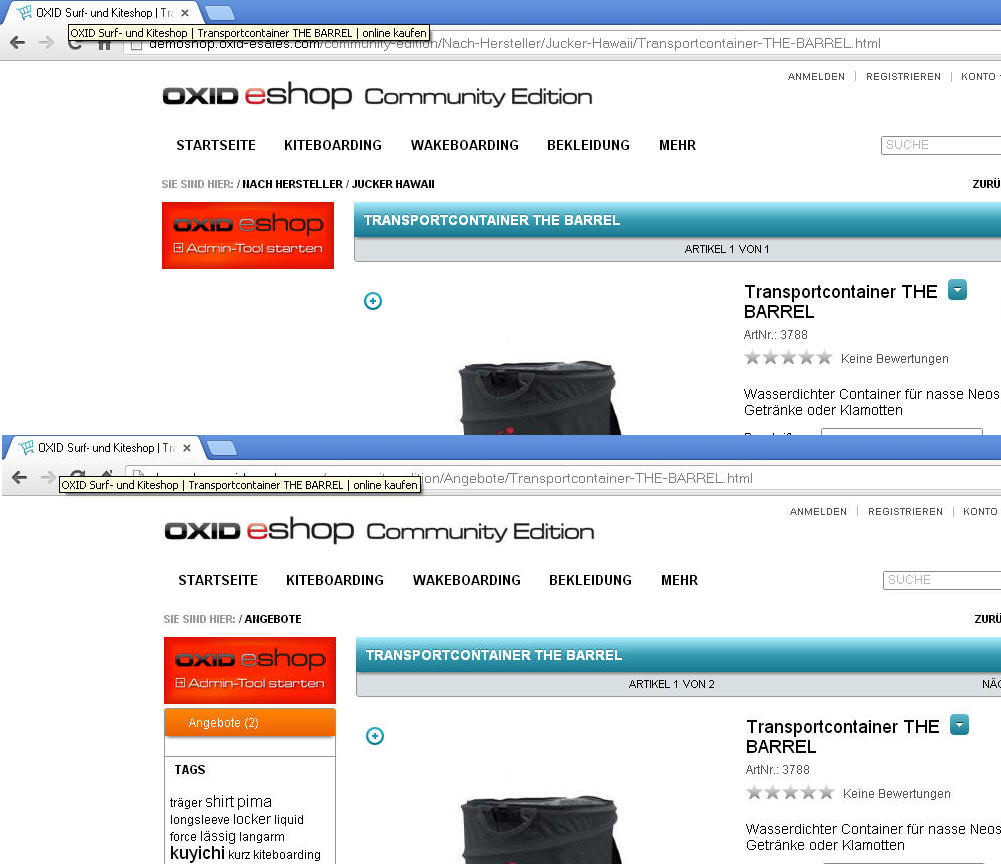 | Steps To Reproduce | look in demo shop a product eg from manufacturer list and category list (see screenshots) | ||||