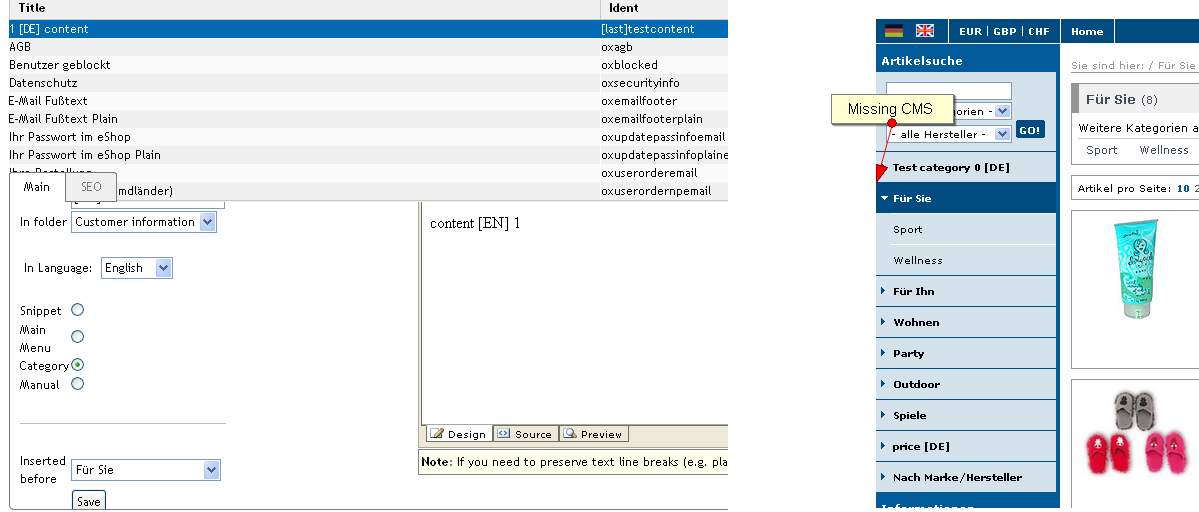 | 0000494 | OXID eShop (all versions) | 1.04. Content, static (register, contact etc.) pages | public | 2009-01-09 15:07 | 2009-01-12 15:51 |