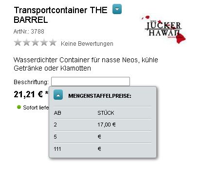 | Description | hi, i reproduced this in a new demo store. If you have scale price (1 item = 1€, 2-5 items = 4€, 6-99 items=3€, all prices are shown in the product detail page under the little arrow. This works fine. If you now add any discount (10% on all items), all discounts for the product and the first scale prices are calculated correctly, BUT from the 2nd scale price, it is just empty. | ||||
