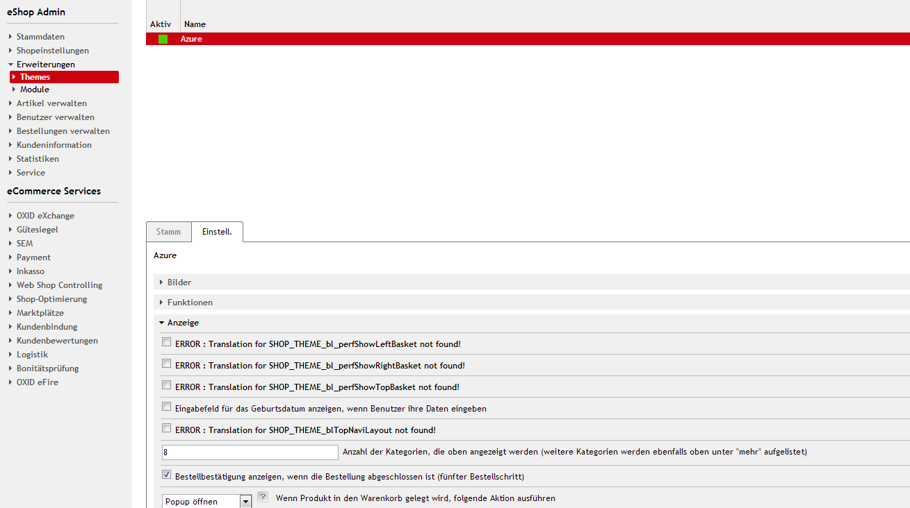 | Description | Between shop versions 4.5.2 and 4.7.7, the options (see attached screenshot) are added. When you are finally on 4.7.7 you will get translation errors in the admin area at the theme options of azure, I guess they are never removed by an updateApp. | ||||