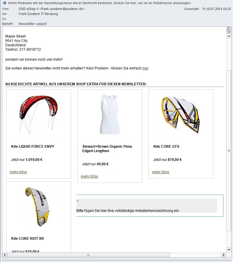 Summary0005826: Sample Newsletter rendering broken in Outlook