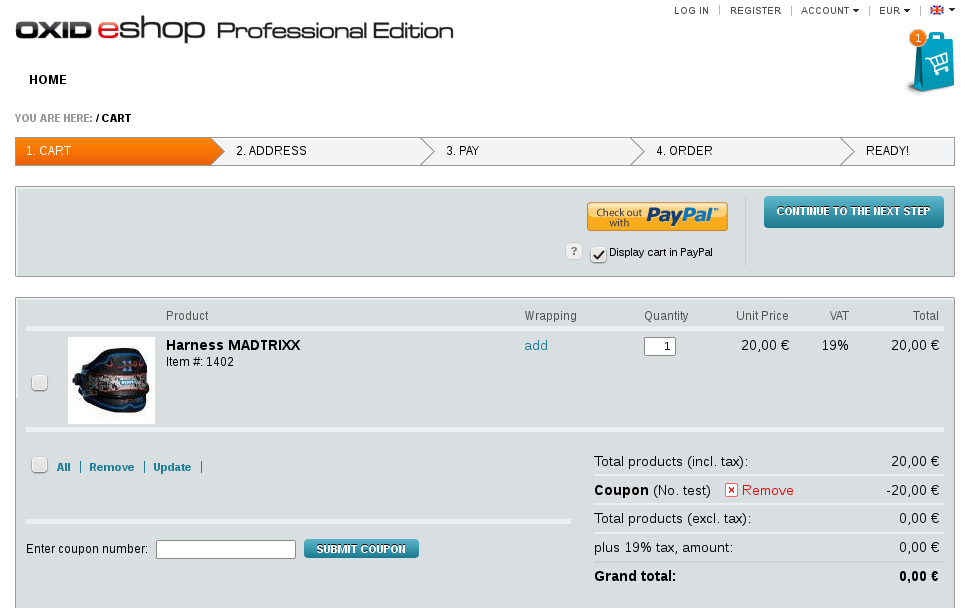 | Additional Information | Tested with the OXID Demoshop (https://demoshop.oxid-esales.com/professional-edition/) | ||||