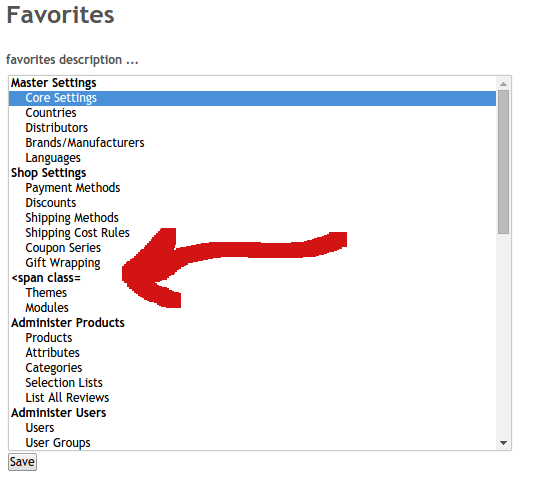 | Description | "<span class=" is shown instead of "Extensions" (see screenshot). | ||||