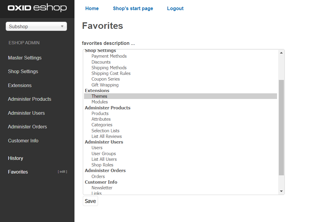 | Steps To Reproduce | Login to admin Click "edit" on the the side on the bottom at the favorites menu. In the list "Extensions" is not shown correctly. | ||||