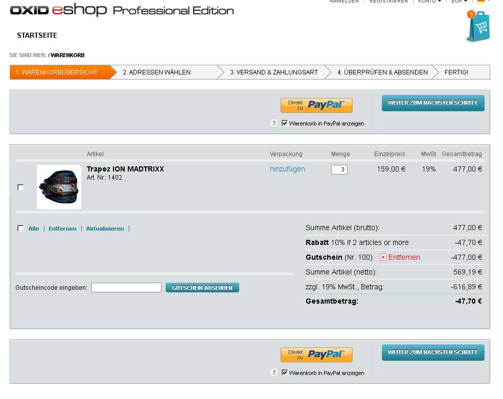| Steps To Reproduce | To reproduce: 1.) create a discount: 10% if you order 2 items or more 2.) create a voucher: 1000€ only valid for articles in category A 3.) place an Item from Category A in basket and add Vouchernummer. => The Total w/o tax is NEGATIVE the Discount see screenshot | ||||