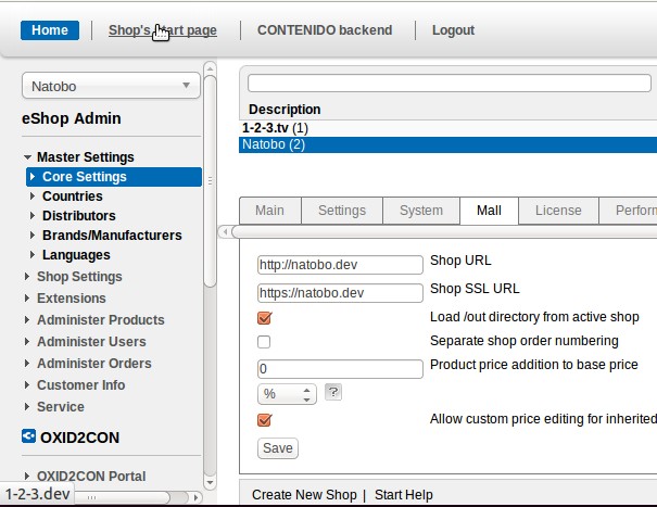 as possible fix, in /application/views/admin/navigation.tpl at the top of file: [{assign var="oConfig" value=$oViewConf->getConfig()}] direct befor: [{if $loadbasefrm}] //reloading main frame insert: top.header.document.getElementById( "shopfrontlink" ).href = "[{$oConfig->getShopURL($oViewConf->getActLanguageId(), false)}]"; |