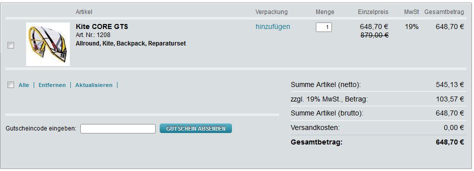 If multiple discounts apply to one product the shop calculates the first discount on article price and then from the discounted price the secound discount. Price Discount Calculation 879,00 € 10% 791,10 € 791,10 € 18% 648,70 € wrong calculation Price Discount Calculation 879,00 € 10% 87,90 € 879,00 € 18% 158,22 € 632,88 € right calculation |