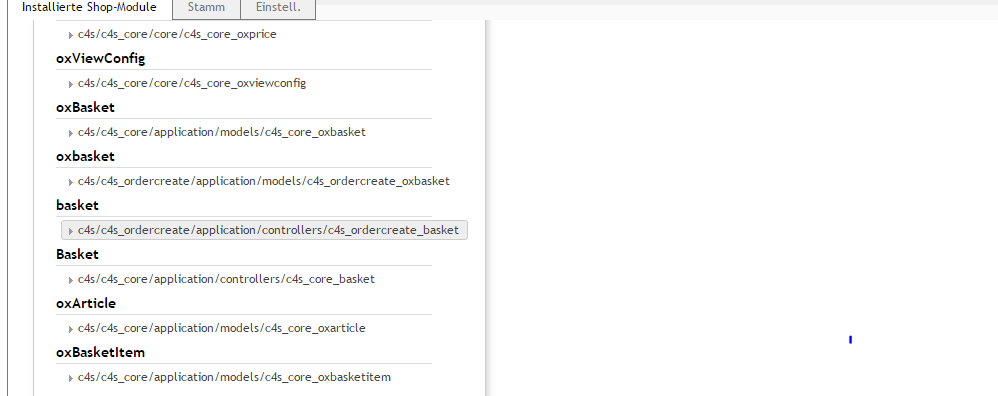 | Steps To Reproduce | - create one module with CamelCase overloading definitions like: 'extend' => [ 'Basket' => 'c4s/c4s_core/application/controllers/c4s_core_basket', ] - create one module with lowercase overloading definition like: 'extend' => array( //Überladung von OXID-Controllern 'basket' => 'c4s/c4s_ordercreate/application/controllers/c4s_ordercreate_basket', ), - write (at example) following sourcecode into c4s_core_basket: class c4s_core_basket extends c4s_core_basket_parent{ public function render() { $oConfig = $this->getConfig(); $oBasket = $oConfig->getSession()->getBasket(); $oBasket->setDeliveryAddressId("10"); var_dump($oBasket); return parent::render(); } render-Method of c4s_core_basket will never called on execution of basket-Controller. | ||||