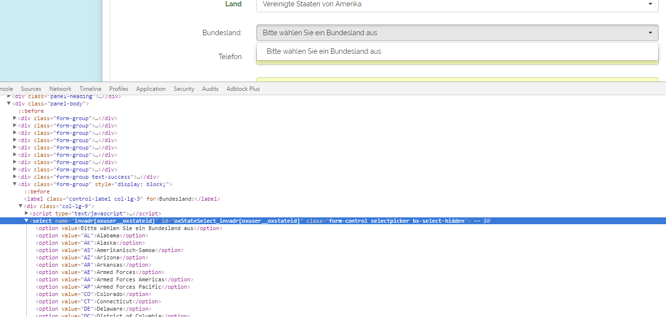 | Description | The states-selection is empty if no state where selected yet. This happens because the bootstrap-picker won't update the selectlist. I can see the states in the source code, but the bootstrap-picker only updates on change of selectlist. | ||||
