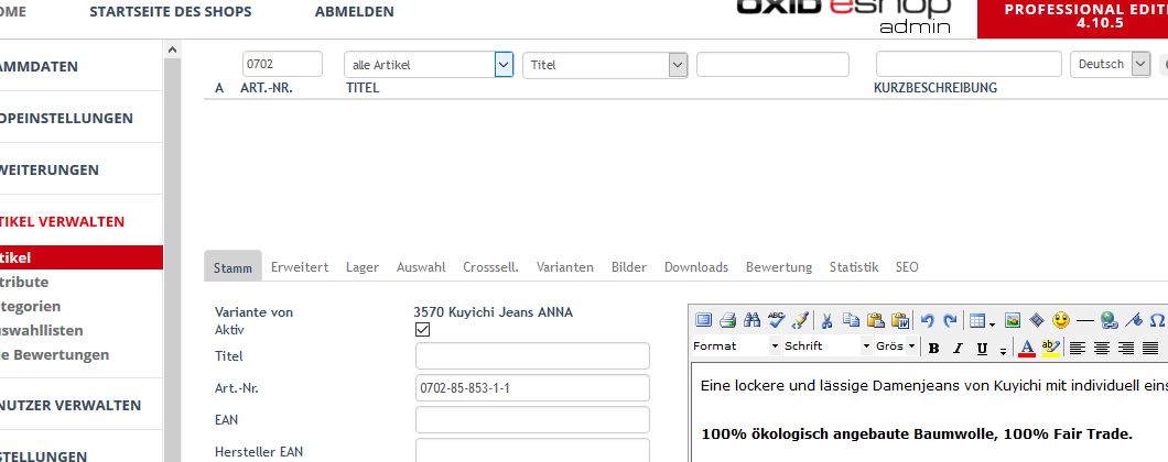 | Steps To Reproduce | https://demoshop.oxid-esales.com/professional-edition/admin > Stammdaten > Grundeinstellungen > System > Varianten > Varianten im Administrationsbereich in Zuordnungs-Listen anzeigen > set "Active" > Speichern > Artikel verwalten > Artikel > no variants shown, even after a search for a specific variant (see screenshot) | ||||