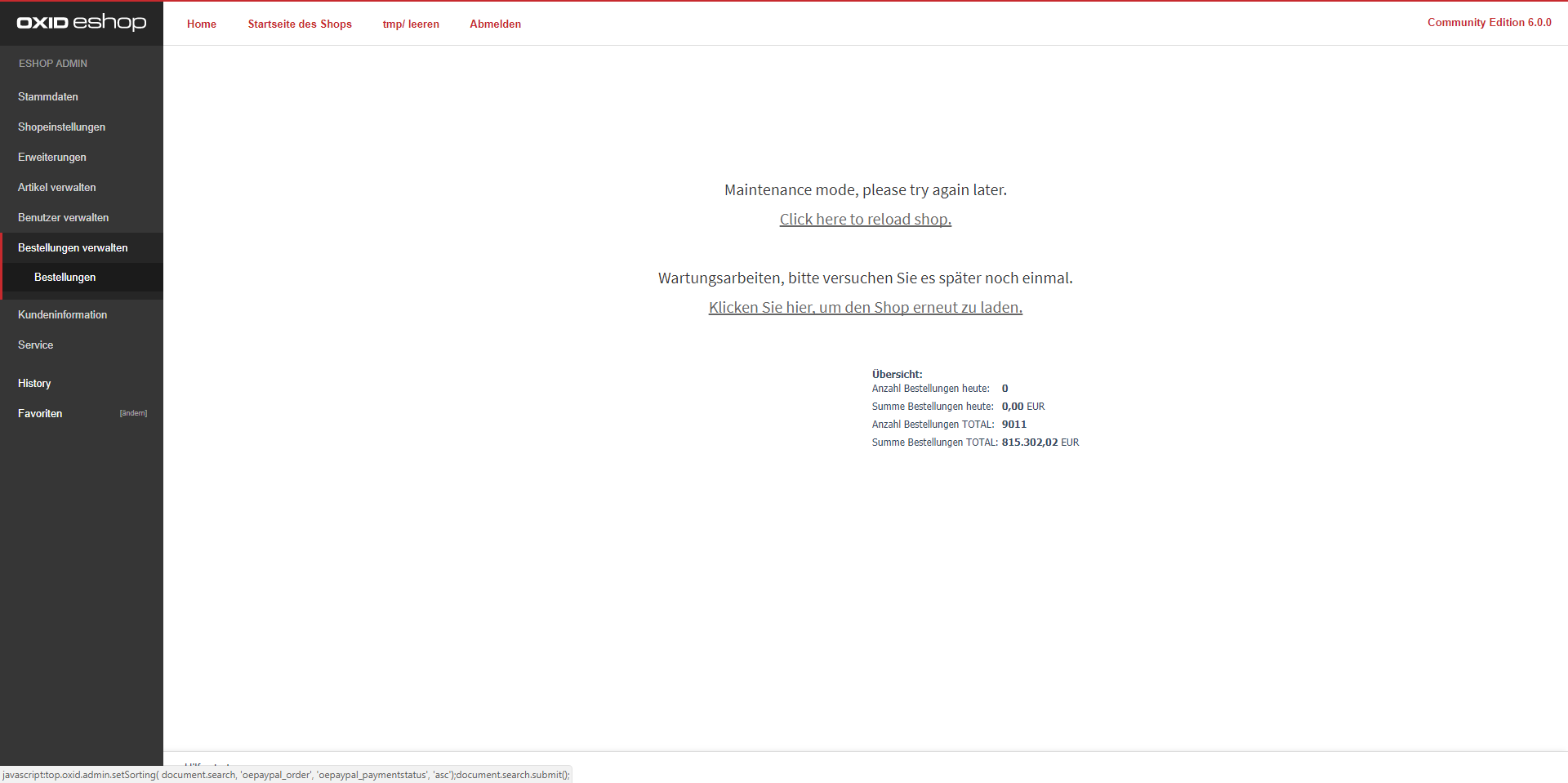 | Steps To Reproduce | 1. Enable the provided PayPal Module 2. Go to "Manage Orders" --> "Orders" 3. Click on the Column "Payment Type" | ||||