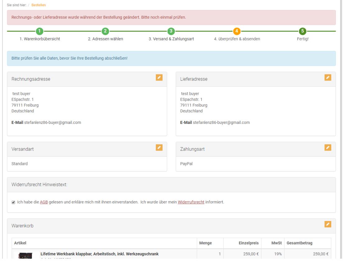 | Description | If customer uses PayPal Express Checkout the telephone number which is deposited with PayPal in the account is not handed over with to shop. So if in shop the phone number is mandatory (master settings -> core settings -> other settings -> Mandatory fields -> oxuser__oxfon), when using express checkout customer gets the error message "Rechnungs oder Lieferadresse wurden während der Bestellung geändert. Bitte prüfen Sie erneut". | ||||