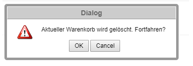| Description | Oxid 6 Enterprise B2B Edition 3.1.1: If you add one or more articles from the order history, order list or collective orders to the shopping basket, this message appears: Current shopping cart is deleted. Continue? See Screenshot attached. The message appears regardless of whether there are actually items in the shopping cart or not. For a shopping basket filled with articles, the message makes sense, but not for an empty shopping basket. | ||||