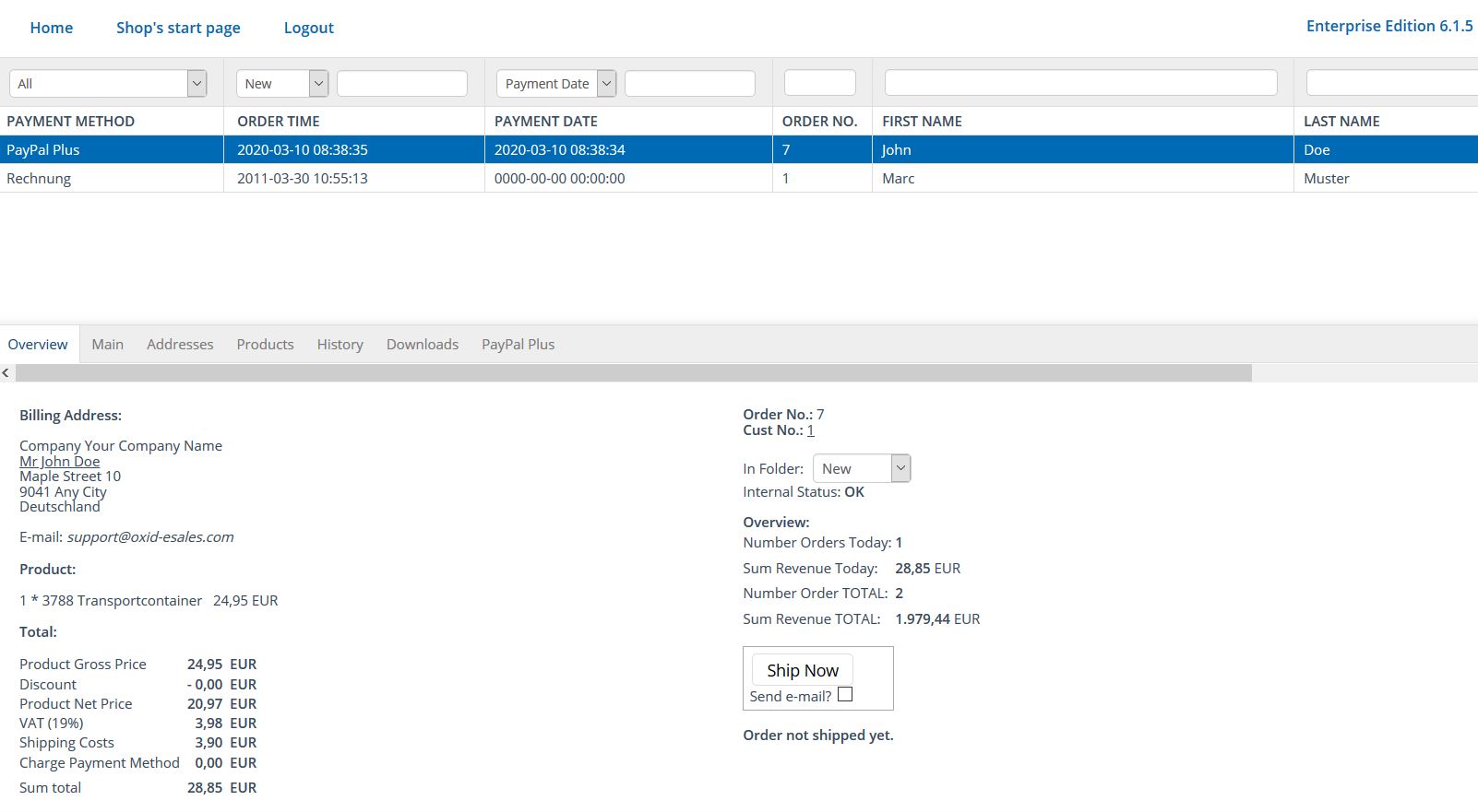 | Steps To Reproduce | 1. Activate PayPal Plus Module 2. Activate in Shop Admin Extensions -> Modules -> PayPal Plus -> Settings -> Other Settings -> Transmit the Order No. as "Invoice Number" to PayPal (This can lead to gaps in order numbering) 3. Execute order 4. View PayPal Transaction | ||||