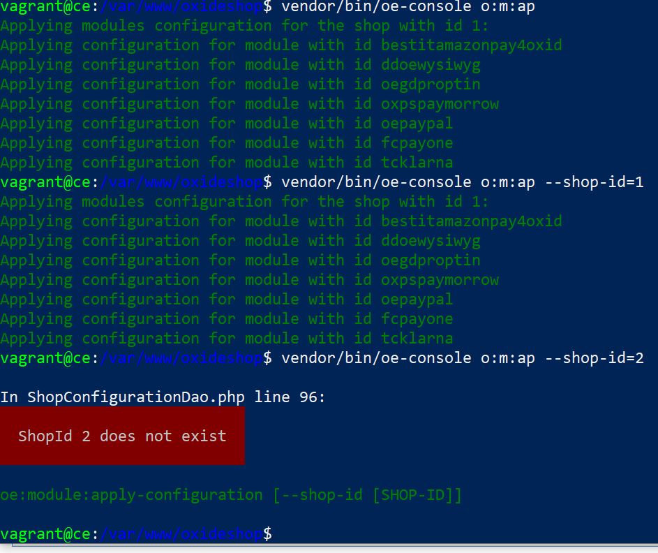 | Summary | 0007181: oe-console command "oe:module:apply-configuration" could not process shop-id-option in CE/PE | ||||