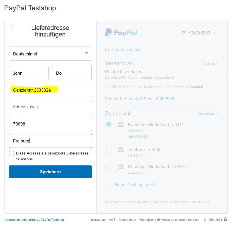 when trying in PayPal module version 6.2.1, the address stored on PayPal (street & number: canzlerstr.333332a) was also taken over without throwing an error. See Screenshot. Need more info. -es |