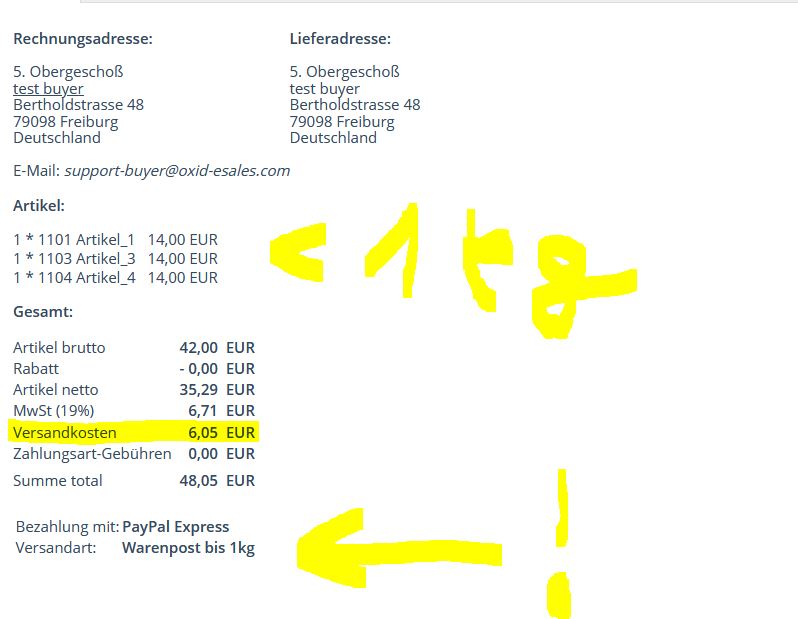 | Additional Information | regardless of the number of items, as soon as the weight exceeds 1 kg, the correct shipping costs are calculated, but the first shipping method is always written to the order. - es - | ||||