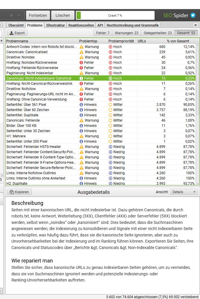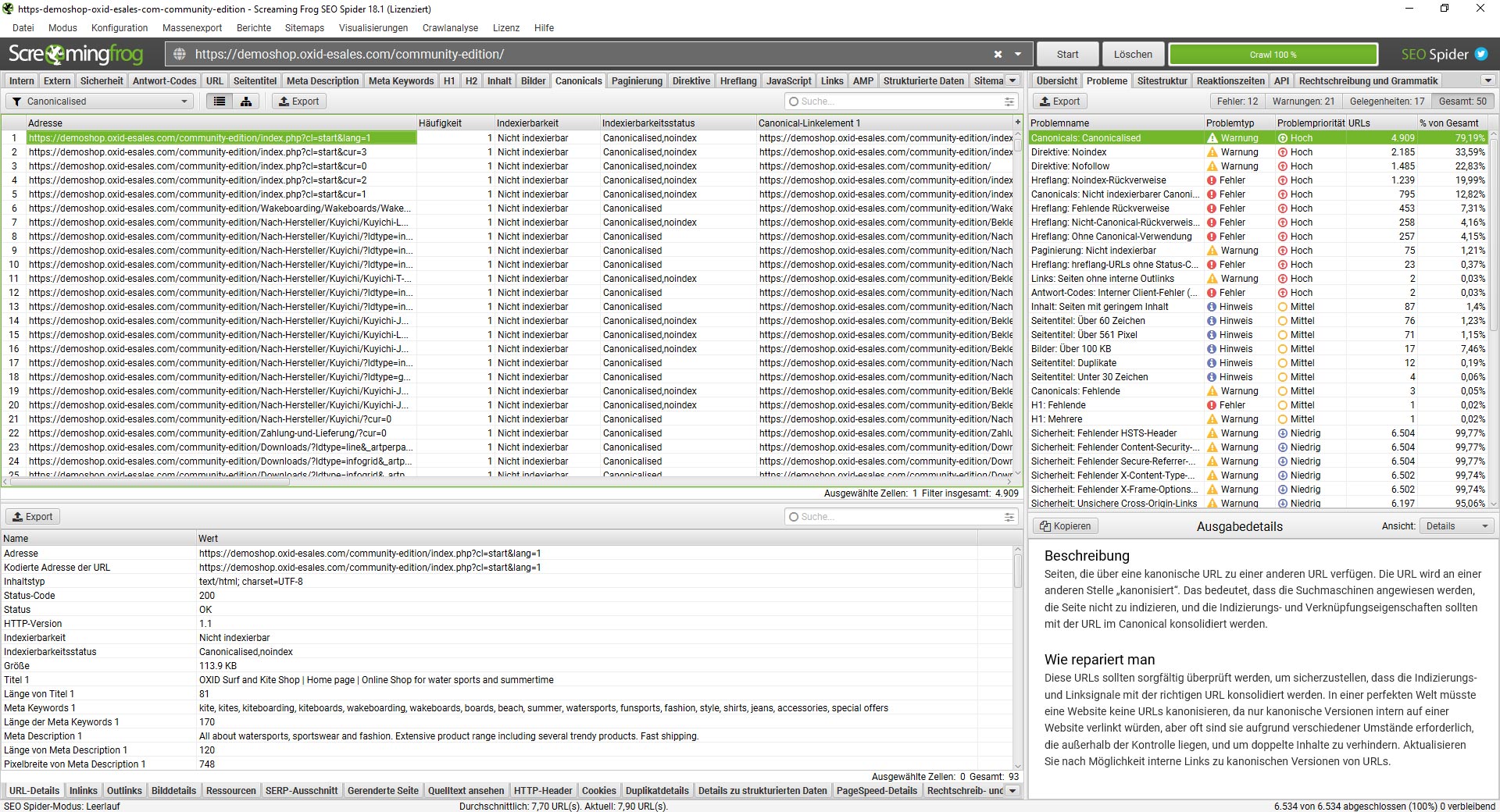 HonestlyI do not think that's my task to explain the solution. I just can tell that the www.screamingfrog.com as leading SEO tool marks the canonical use in Oxid shops as wrong. Please see the screenshots for their report for further explanation. You can also download a free testing version: https://www.screamingfrog.co.uk/seo-spider/pricing/ |